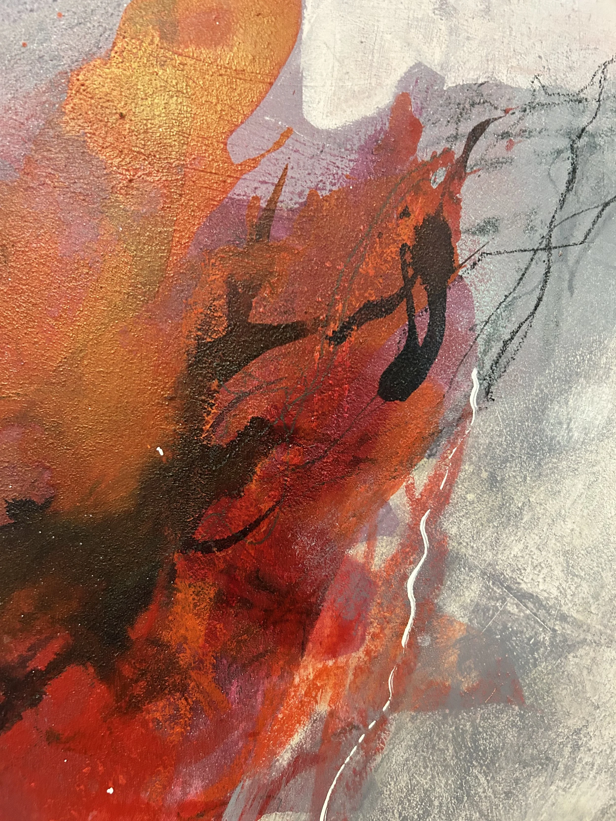As a mixed media abstract artist my work is about experimentation, intuition and exploration. Each painting begins with exploration with line, colour, shape, movement and texture. Through many layers of paint and mixed mediums, I want to create a visual dialogue that invites the viewer to pause and find their own meaning in the abstraction. I add and subtract, add and subtract, and wrestle with marks, sometimes for hours, until the piece develops a life of its own during the layering process.